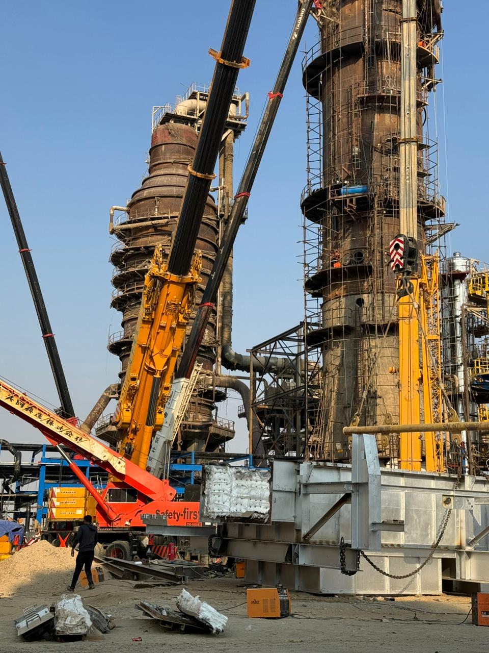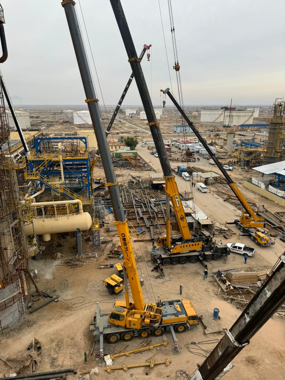 AL KHATAB AL MUTAHIDA Co. had been contracted with (MINISTRY OF OIL/NORTH REFINERIES CO. (ش.ع)شركة مصافي الشمال(لجنة أمانة) (2 Monthly Rental Service) to Supply and operate Mobile Crane LTM 1450-8.1 Liebherr, with driver and all the relevant needed to operate the machines to perform 3 shifts 24hr.