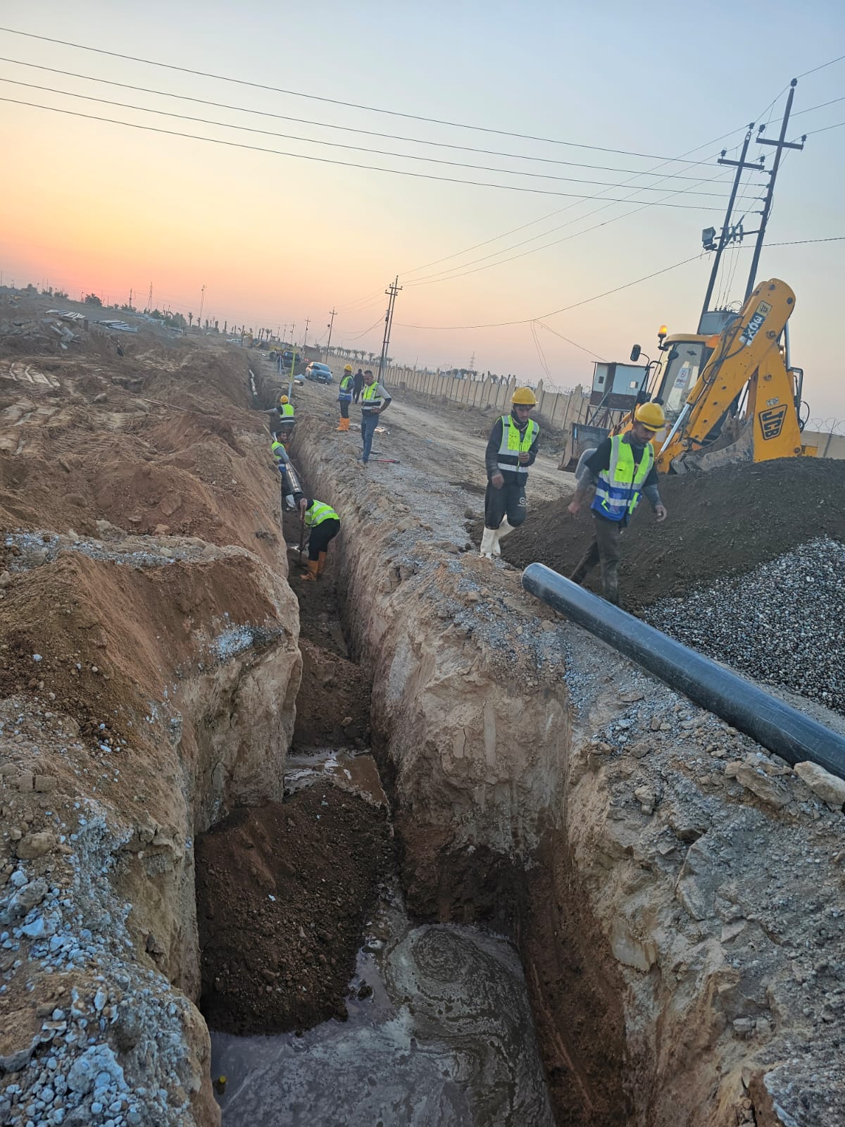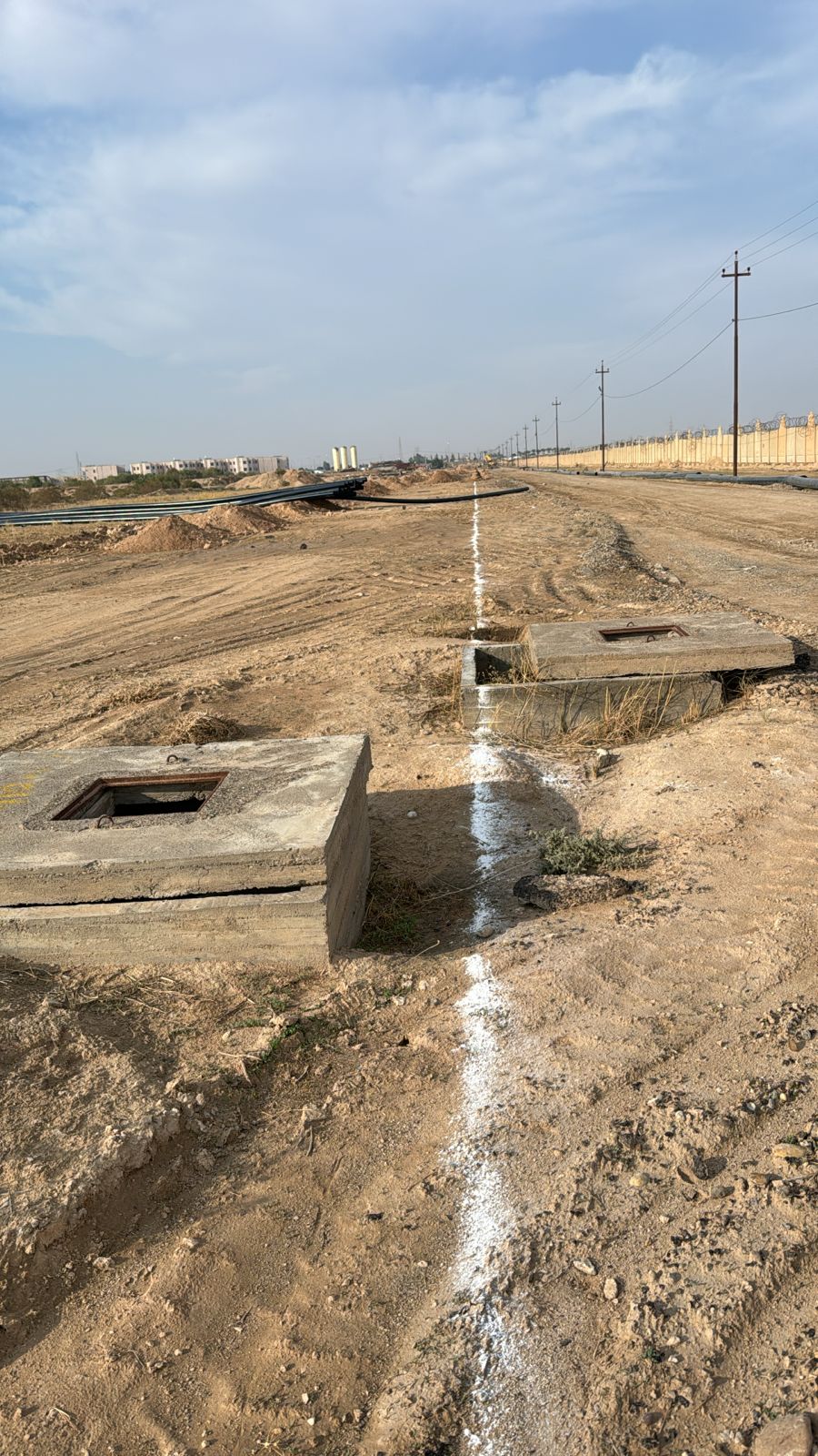- Rainwater drainage network: Supplying materials, equipment, machinery, and labor, including PVC pipes, all in accordance with Iraqi Roads and Highways technical specifications. The drainage system is designed to effectively manage rainwater and prevent flooding, ensuring longevity and functionality of the road and garage area.