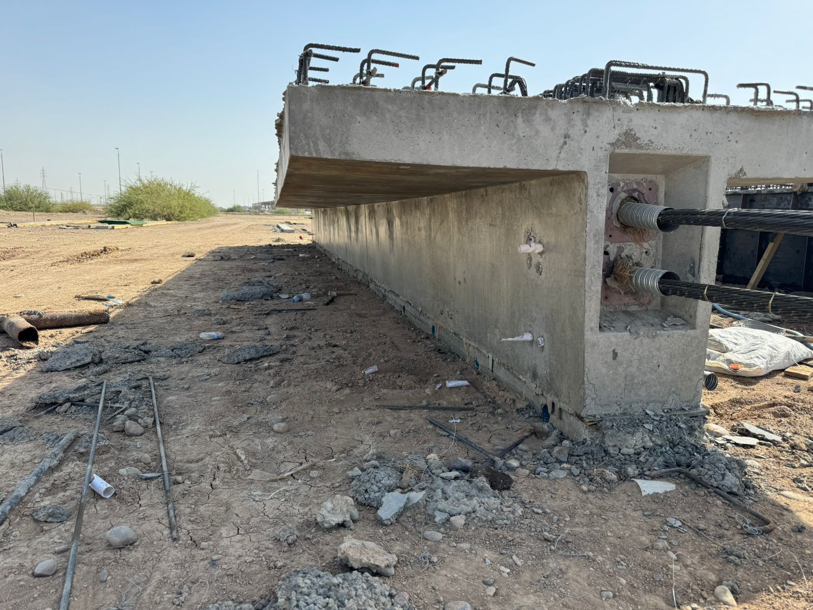 - Precast (pre-tension) Concrete Girders:install reinforced concrete girders (Pre cast pre stressed T section) type as details below:The compressive strength for the concrete not less than 55 MPa.