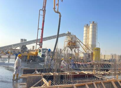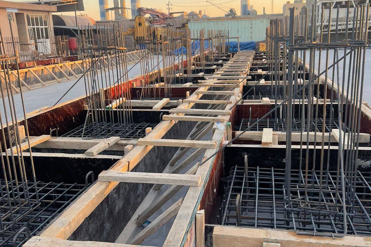 - Reinforced Concrete Cylindrical/cubical strength - RCC (C28/C35) using SRC in foundation, skid bases, etc.; reinforcement included formwork (shoring as required), supplying, pouring, vibrating and installation.